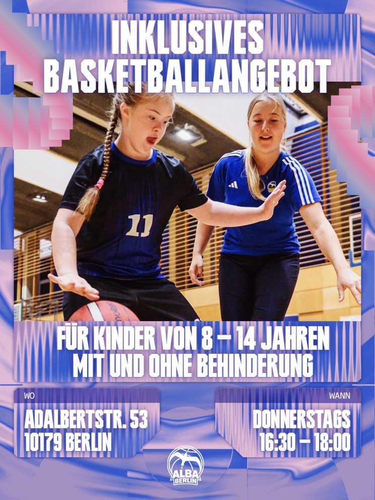 Inklusives Basketballangebot von Alba Berlin für alle Kinder von 8 – 14 Jahren mit und ohne Behinderung/ immer Donnerstag (außer in den Schulferien)